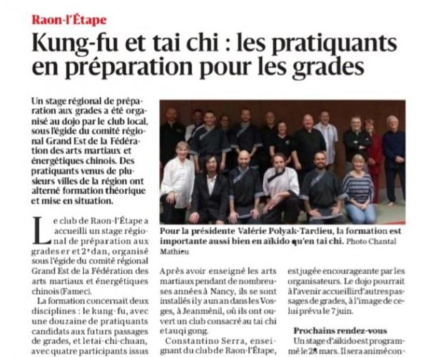 Stage de préparation duans Taichi - Vosges-Matin - 14 mars 2026
