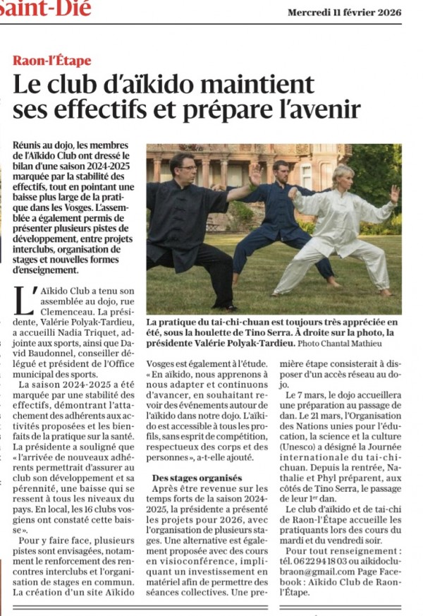 Le club d'Aikido prépare l'avenir - Vosges-matin 11/02/2026